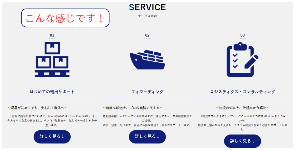 - 📦 サービス内容をカード形式で表示